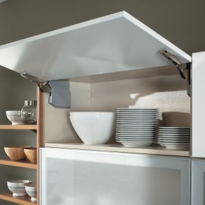 Oblikovno in barvno enako pohištvo, s katerim je opremljena kuhinja, se nadaljuje v dnevni prostor. Nekateri elementi se lahko uporabijo tako v kuhinji, kot dnevnem prostoru ali pa imajo funkcijo predelne stene. Včasih se elementi v drugi barvi uporabijo samo v enem delu prostora, včasih pa v obeh delih v različnih barvah.