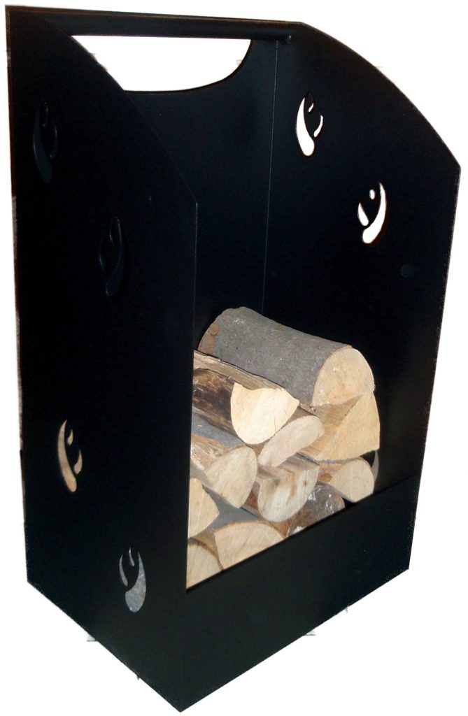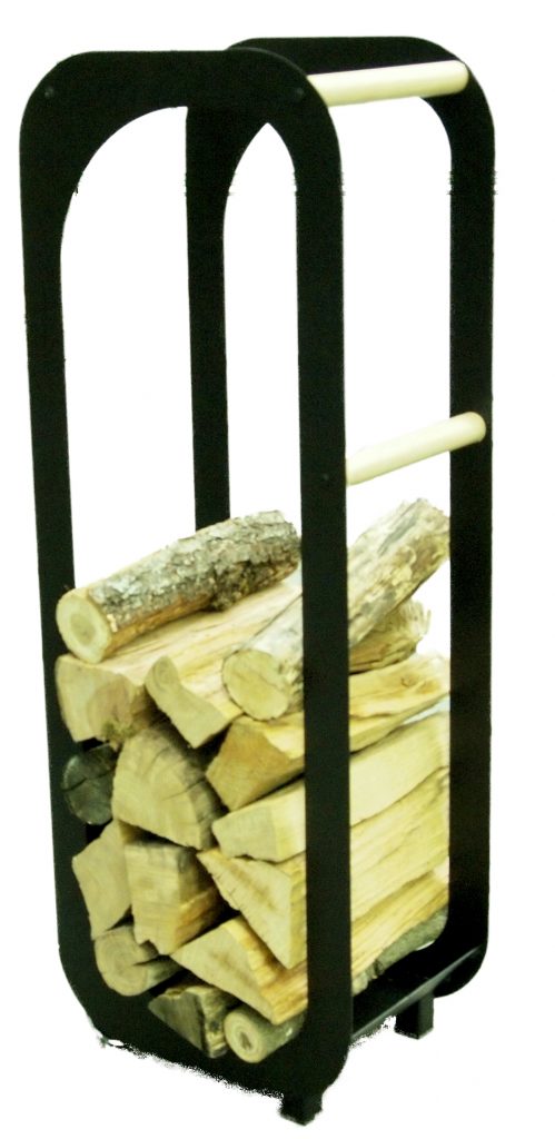 ☝ Regal – zalogovnik za drva PLAM v črni barvi. Na voljo dve izvedbi, so prašno lakirani z barvo, ki ima povečano odpornost na praske po standardu ISO6272-1.
