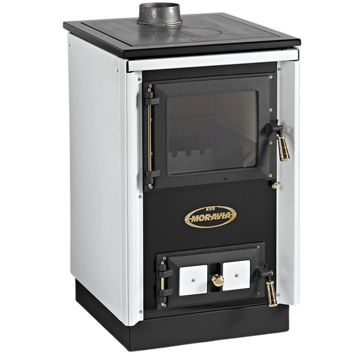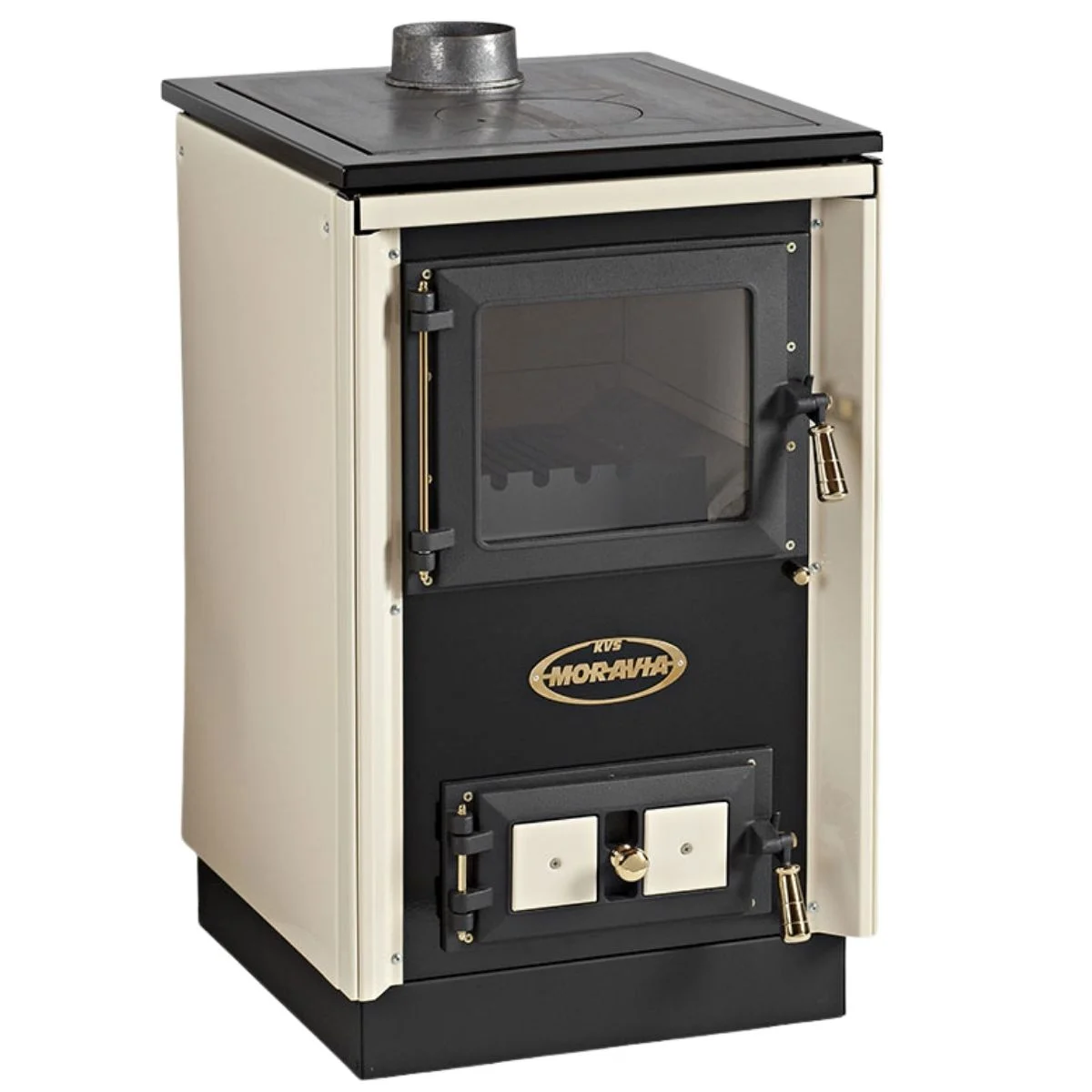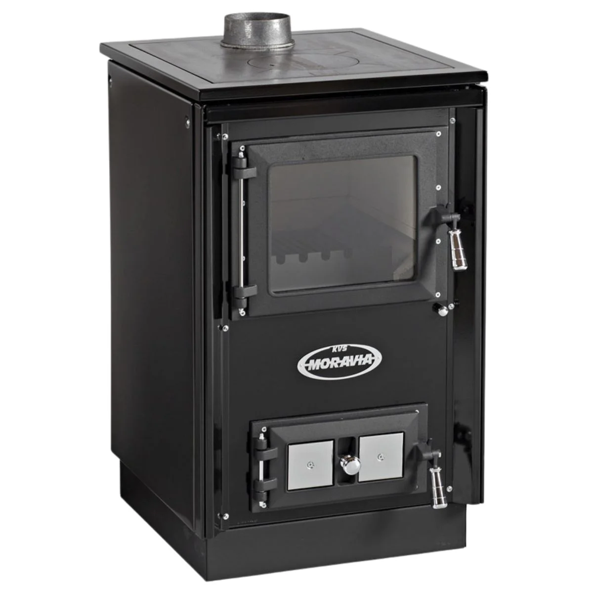 Štedilnik na trda goriva KVS Moravia 9114 združuje rustikalno toplino in praktičnost. Namenjen je ogrevanju prostorov od 80 do 150 m³, omogoča kuhanje na železni plošči ter uživanje ob pogledu na ogenj skozi steklena vrata kurišča.
